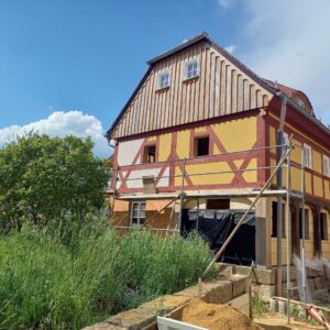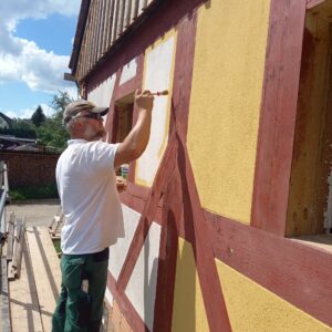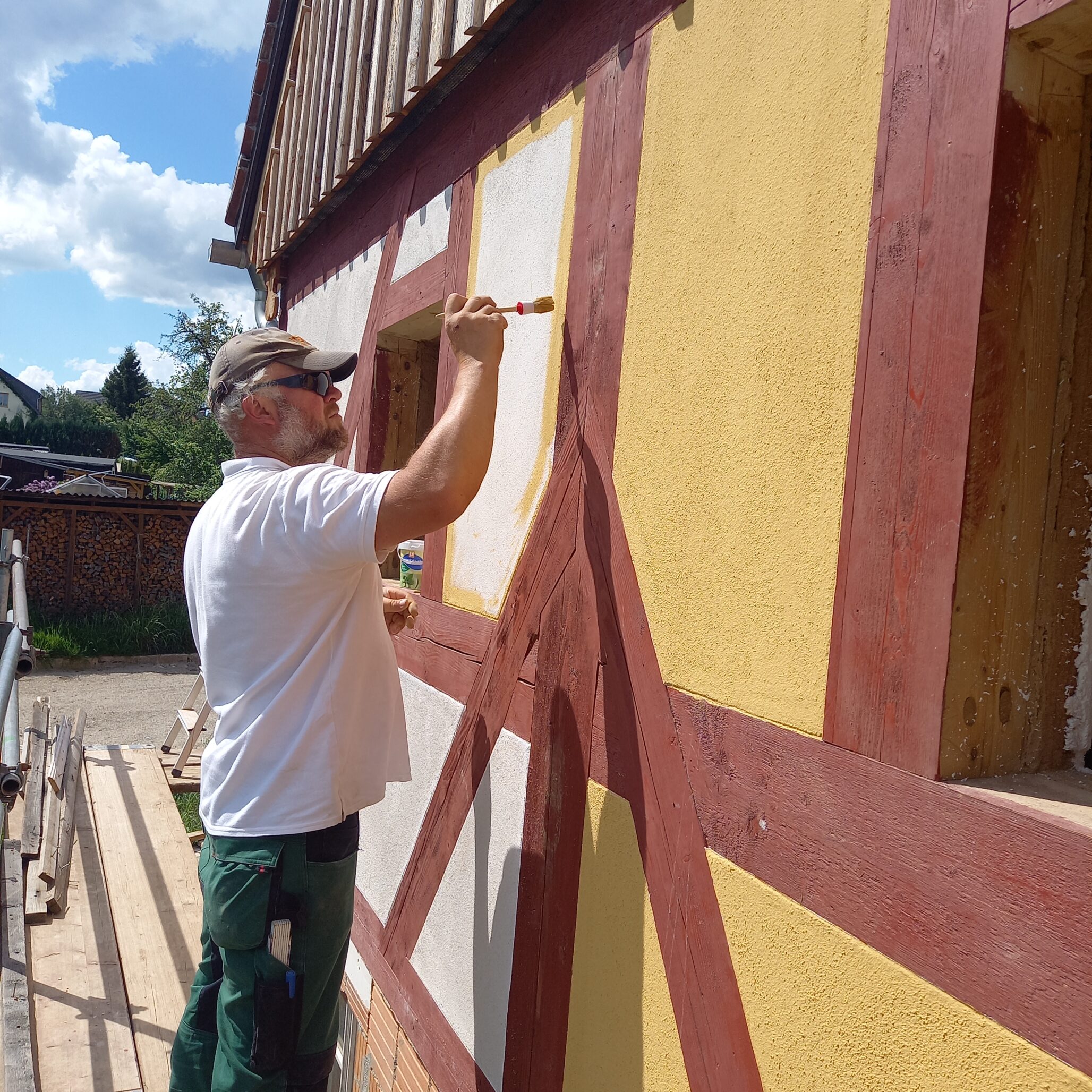 Es kommt Farbe ins Spiel! So langsam bekommt das Ferienhaus seine fertige Außenansicht.
